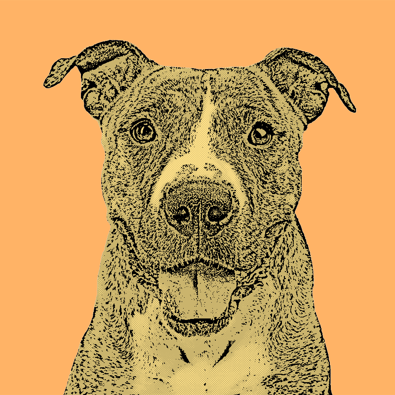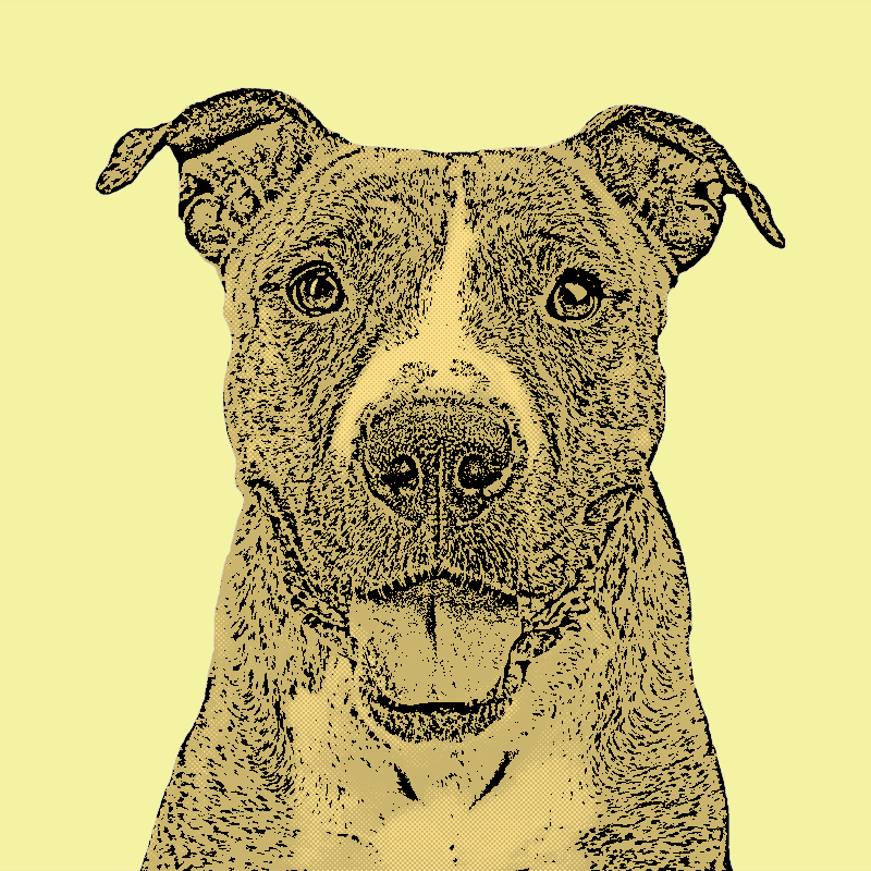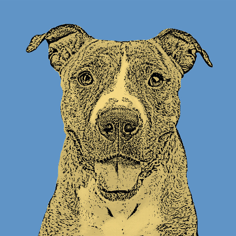 Image of your pet will be one solid background color (see images), and your dog's fur will be close to your dog's original coloring (gray, black, white, tan, etc.). If your pet's face is multiple colors, the color will appear as different tones.